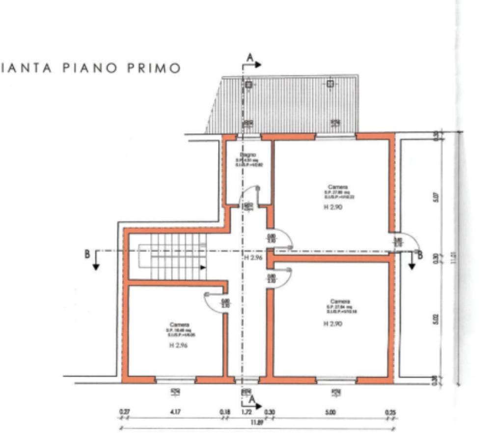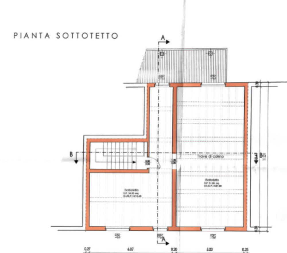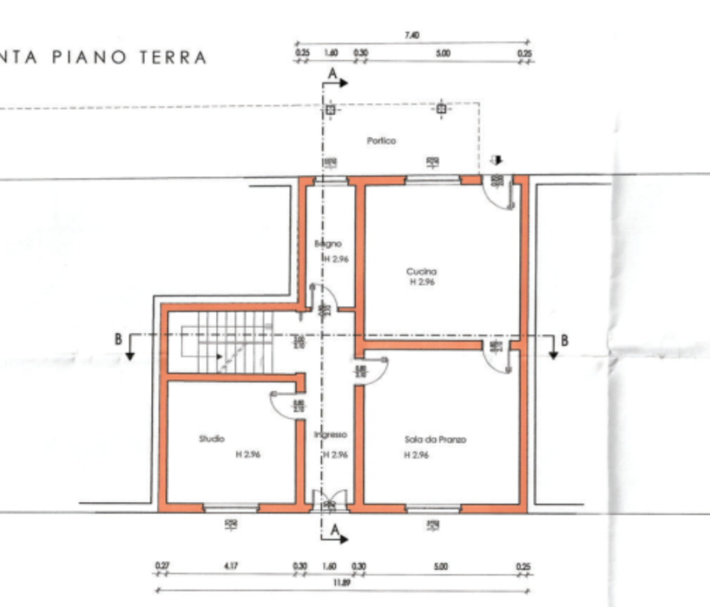 Trattasi di una porzione di casa composta da piano terreno con un corridoio d'ingresso, da un locale con destinazione studio e la scala di accesso al piano primo. Sul corridoio del piano primo, da sinistra a destra, si affacciano una lavanderia, un'ampia zona soggiorno-cucina-pranzo, un antibagno e un bagno. Il piano sottotetto è costituito da tre locali soffitta e da un ripostiglio.