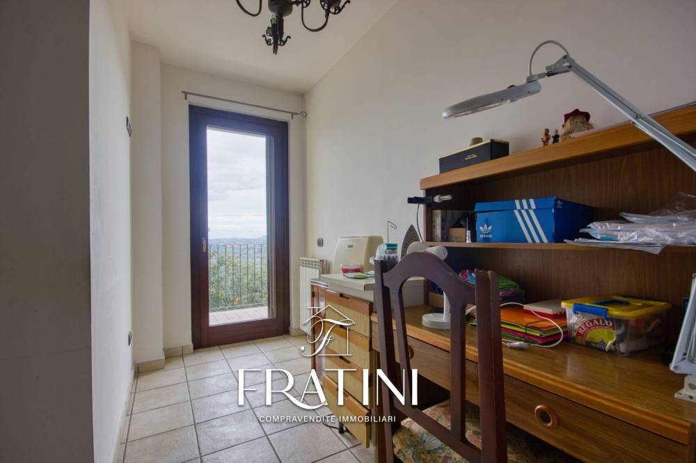 Al piano terra troviamo un ampio e luminoso soggiorno con cucina a vista, un disimpegno che conduce alla zona notte composta da tre camere da letto due matrimoniali e una singola e due bagni. La camera matrimoniale principale dispone di bagno privato con doccia e accesso a un balcone con vista panoramica sulla vallata, mentre la camera singola ha accesso a un secondo balconcino. Il bagno principale è dotato di vasca.
