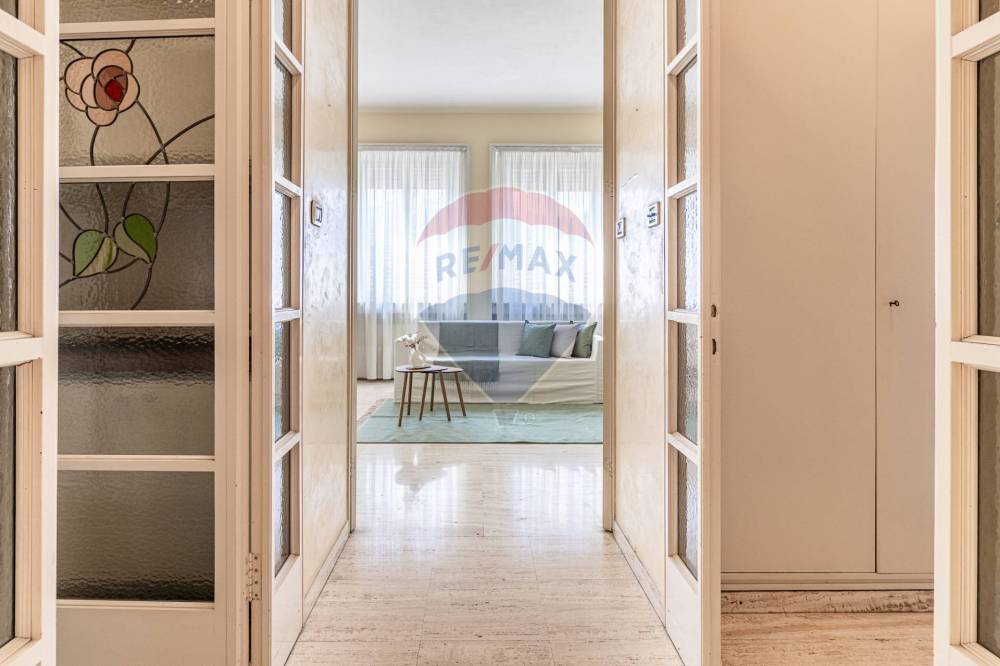 L'appartamento si trova al secondo piano, servito da ascensore, e si sviluppa su tre locali con doppi servizi e doppi balconi. Inserito in uno stabile degli anni 60, si distingue per gli spazi generosi e i soffitti alti, caratteristiche che donano respiro, luce e grande possibilità di personalizzazione. Grazie all'ampia metratura, è possibile ricavare con facilità anche una terza camera da letto o uno studio.
