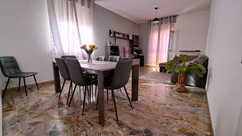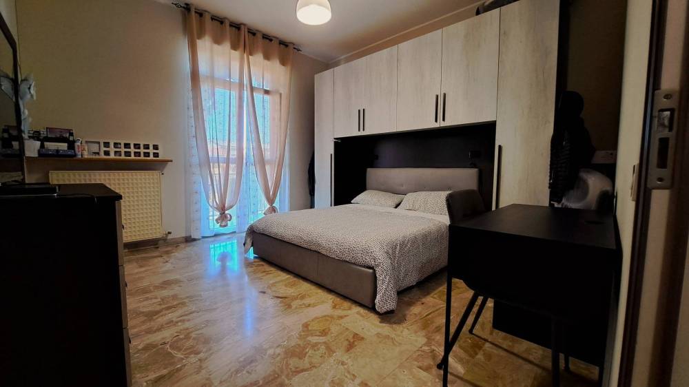 Limmobile si distingue per le ampie metrature e la funzionale distribuzione degli spazi: ingresso,cucina abitabile separata, soggiorno luminoso con affaccio su balcone, disimpegno, due camere da letto, di cui la matrimoniale con accesso diretto allo stesso balcone del soggiorno e due bagni.