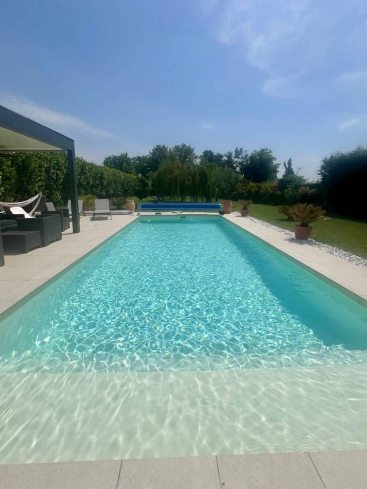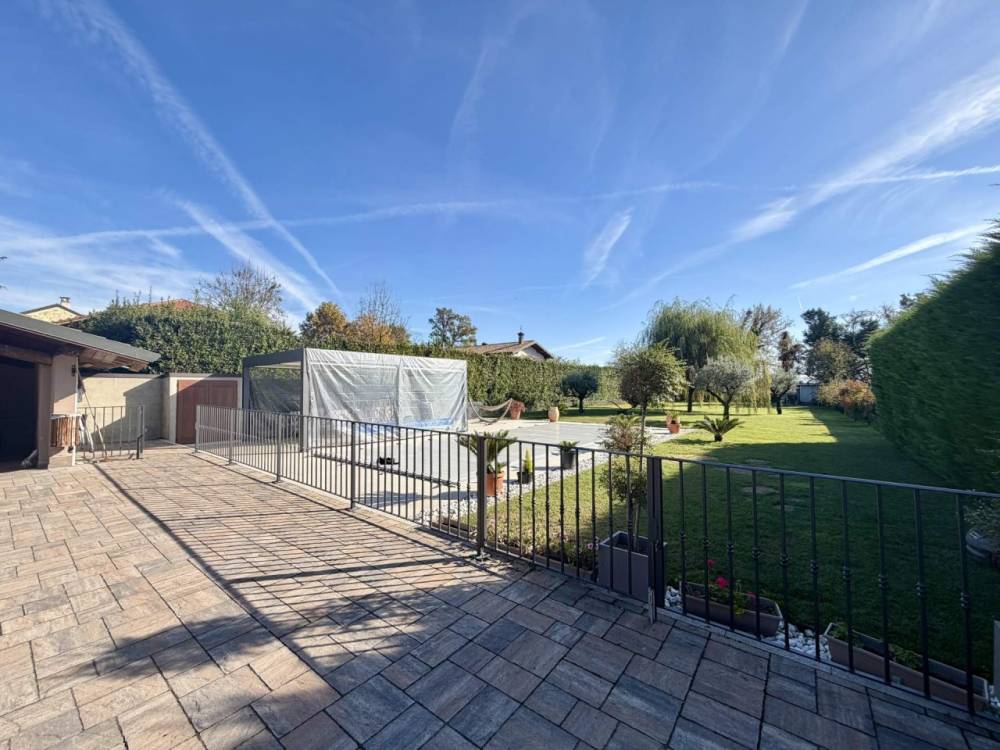 L’abitazione, di 264 mq, si sviluppa su due livelli e si apre su un ampio parco privato, con piscina, che gode di totale privacy.