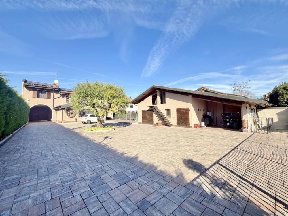 Si accede alla proprietà da due ingressi blindati: dal comodo ingresso pedonale di facciata, recintato, o dal bellissimo portone ad arco automatizzato del carraio che porta dentro al grande cortile di proprietà.