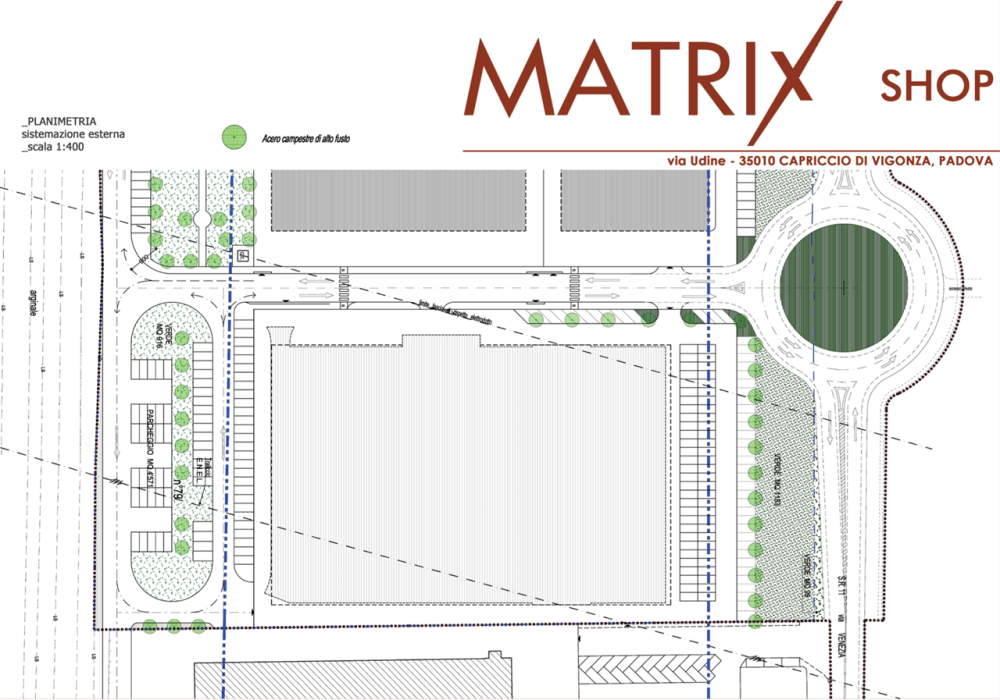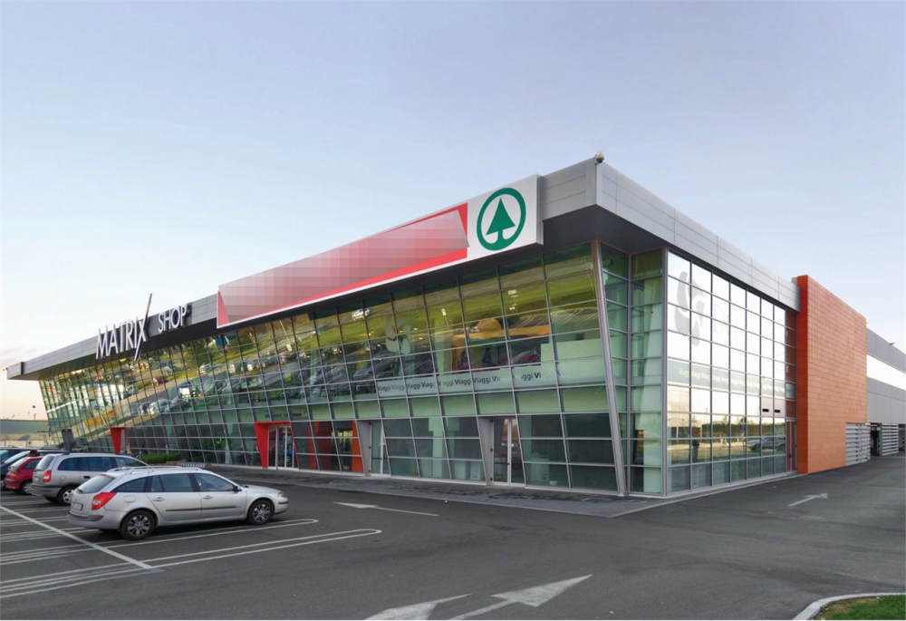 Complesso commerciale di 12.427 metri quadri, composto da due piani fuori terra e dotato di ampio parcheggio e posti auto coperti interni accessibili da via Udine, Vigonza (PD). Ogni piano fuori terra ha una superficie di circa 7.600 mq, sui quali sono distribuiti i vari locali, al piano terra circa 2.200 mq sono a carattere commerciale ed i restanti sono destinati a parcheggio coperto, mentre il primo piano è interamente destinato a spazio commerciale, ovvero negozi e supermercato. Sulla copertura piana dell'edificio sono installati dei pannelli fotovoltaici per la produzione di energia elettrica da fonte solare.