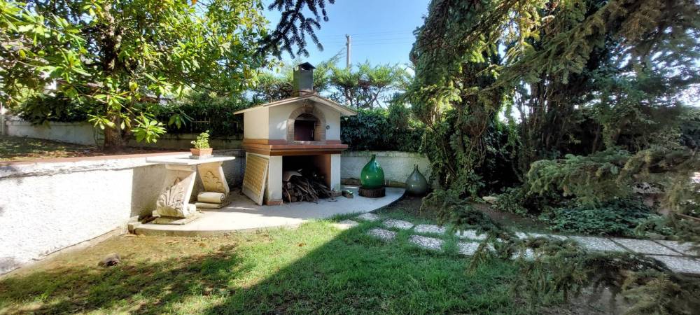 Ad ultimare la proprietà giardino privato di circa 1000 mq, garage, cantina e gazebo in muratura con forno e barbecue.