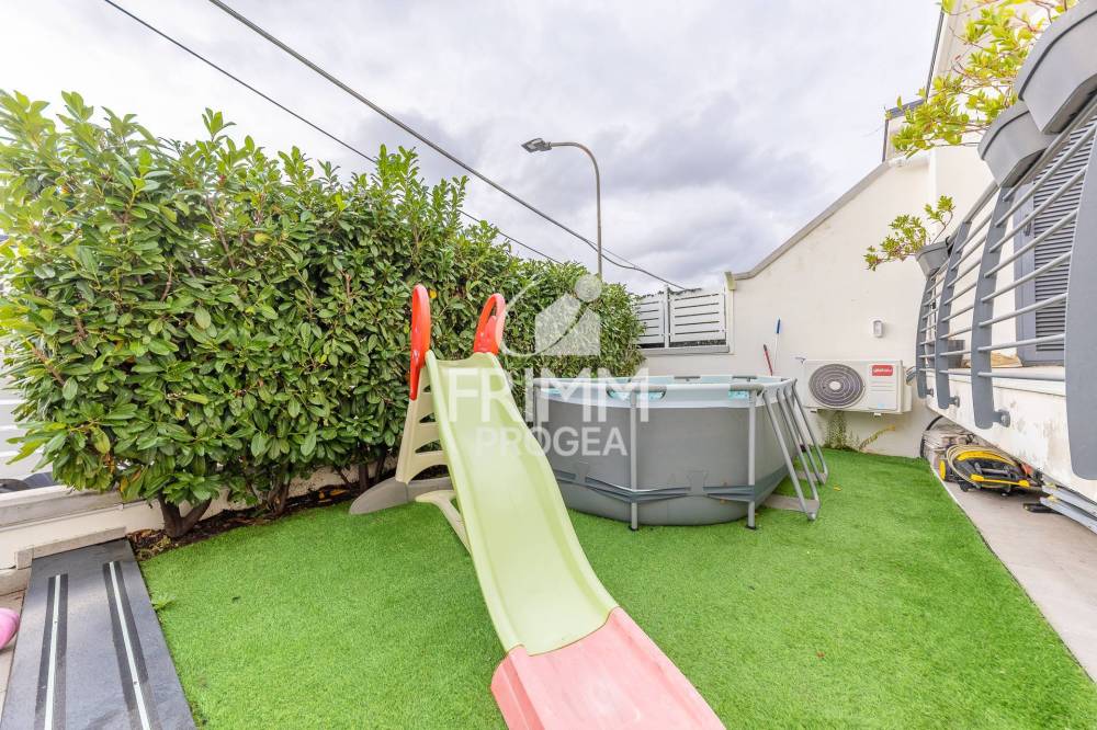 Al piano terra, il villino offre un giardino privato da cui, tramite una scala esterna, si accede al soggiorno con angolo cottura ed a un bagno, creando un ambiente funzionale ed accogliente. La zona notte al piano sottostante si compone di due camere da letto, bagno, cabine armadio e ripostiglio, garantendo comfort, praticità e spazi ben organizzati per tutta la famiglia. Limmobile è dotato di arredi nuovi e in sintonia con lambiente .
