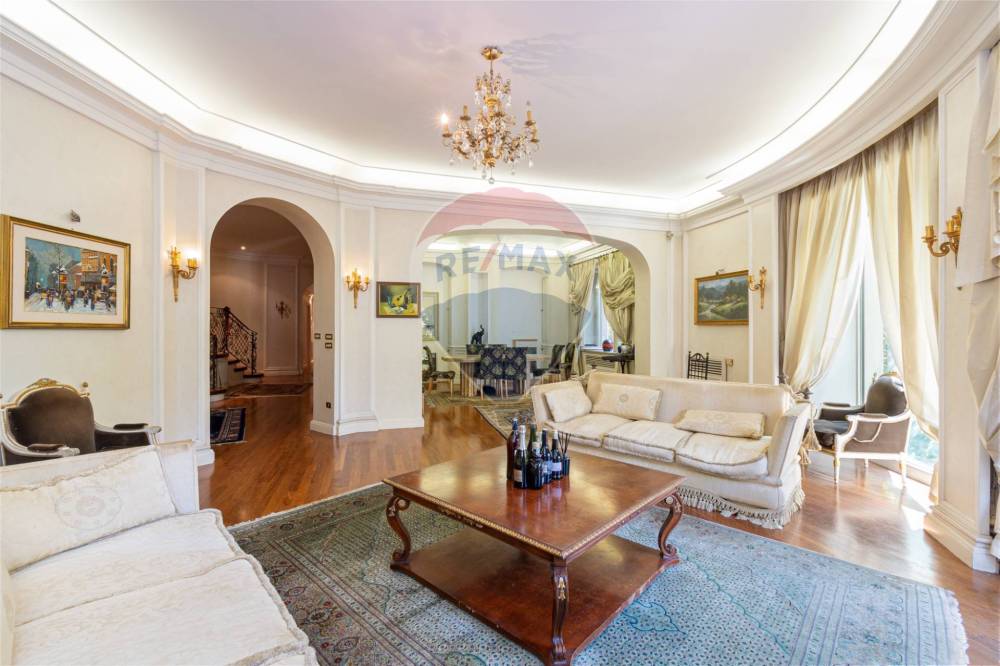 Linterno dellabitazione, caratterizzato da finiture di altissimo pregio, si apre su un ingresso di rappresentanza accessibile tramite una scala gemella, tipica in residenze nobiliari. Il triplo salone, la sala da pranzo annessa, e lo studio con camino antico in pietra unica e pareti rivestite in boiserie pregiata, creano unatmosfera raffinata ed accogliente. Le finestre ad arco e i soffitti alti 335 cm contribuiscono a donare luminosità e spaziosità agli ambienti. La cucina abitabile, completa di locali di servizio, è pensata per un utilizzo funzionale senza rinunciare allestetica.