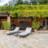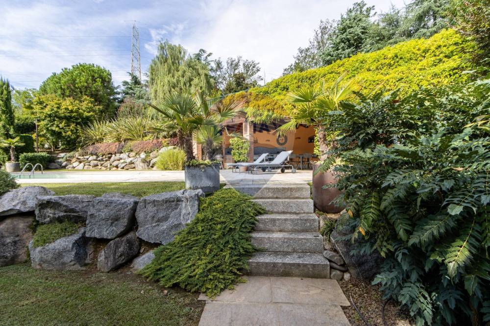 La proprietà si apre su un ampio ingresso che conduce alla luminosa zona living, impreziosita da un elegante camino e da grandi vetrate che si affacciano sul patio esterno, ideale per momenti di relax. Da qui si accede direttamente alla zona piscina di proprietà di 4 m x 8 m, a sfioro con acqua cristallina, ideale per rilassarsi e nuotare, circondata dallarea solarium, valorizzata da un importante berso coperto in legno e muratura con cucina in muratura e bbq e bagno di servizio, perfetto per pranzi e cene e vivere appieno gli spazi esterni in ogni stagione, il tutto immerso in unoasi verde di circa 2000 mq.