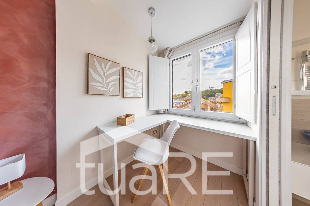 L'immobile si trova nel rinomato quartiere Prati, precisamente in via della Giuliana a due passi dal Vaticano e da tutti i servizi di zona. Posto ad un 9° ed ultimo piano di uno stabile signorile con ascensore che arriva fino al piano 8°, l'appartamento risulta molto luminoso grazie alla doppia esposizione ed agli affacci aperti. Internamente si presenta completamente e finemente ristrutturato con pavimenti in parquet di rovere. Il valore aggiunto è sicuramente la presenza del terrazzo vivibile a cui si accede tramite la cucina che essendo molto spaziosa offre la possibilità di poterci ricavare la 3° camera matrimoniale realizzando una cucina a vista nel salone anch'esso molto spazioso. L'immobile risulta una proprietà di alta rappresentanza, livello e unicità per la zona. A completare la proprietà troviamo una comoda cantina. Tutte le informazioni, misure e planimetrie riportate nel presente annuncio sono meramente indicative e non costituiscono in alcun modo elementi contrattuali.