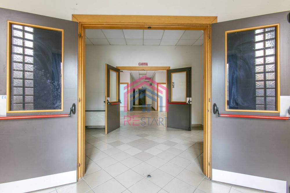 Lingresso principale introduce in un atrio di rappresentanza di 12 mq, collegato ad una sala dattesa di 14,20 mq, ad un ufficio di accettazione di 17,49 mq con adiacente ripostiglio di 7,5 mq e ad un secondo ingresso di 11,92 mq.