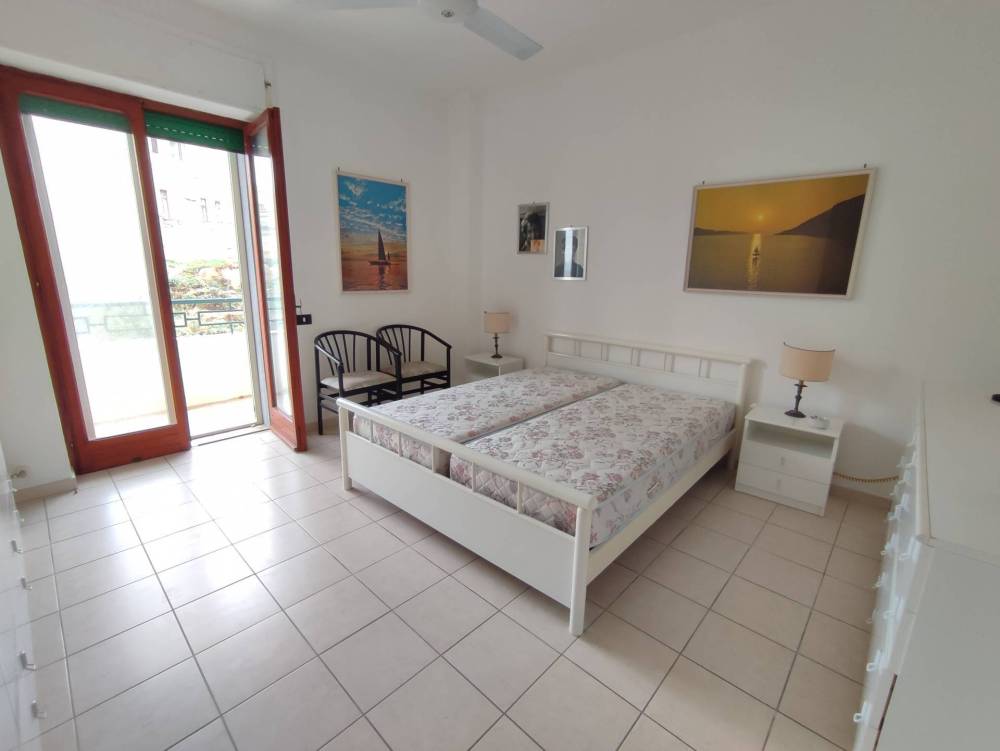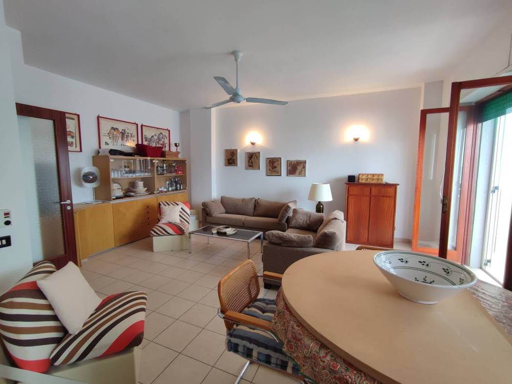 L'immobile si dispone su una metratura di circa 100 mq ed è composto da ingresso su disimpegno, cucina abitabile con balcone, arricchito da una straordinaria vista mare e sul centro storico, salone con balcone, due camere da letto matrimoniali di cui una con bagno privato e balcone, secondo bagno disimpegnato.