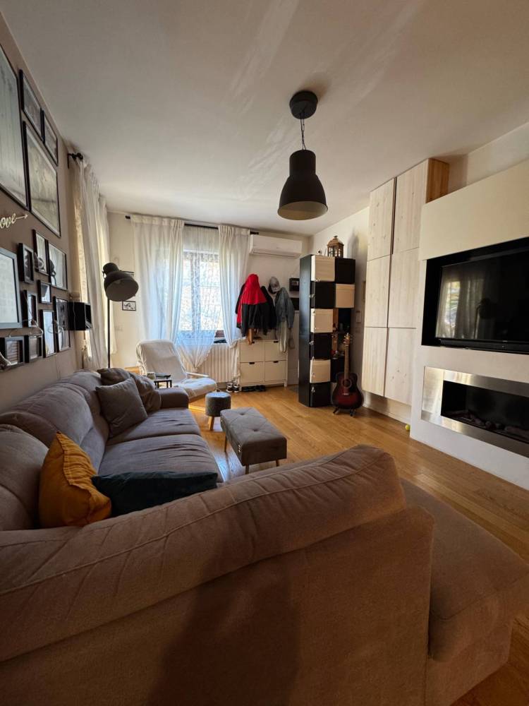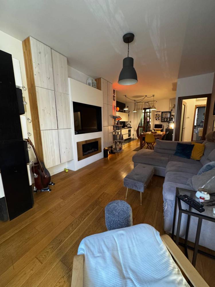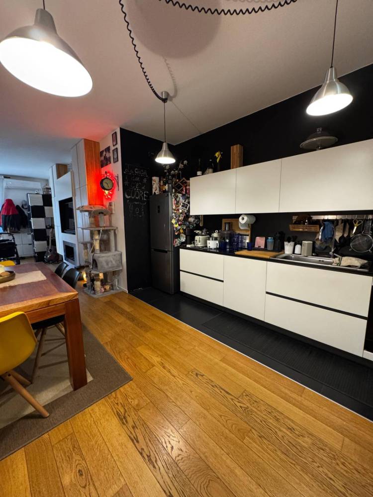 Limmobile si presenta accogliente e funzionale, curato in ogni dettaglio e dotato di tutti i comfort necessari per vivere in totale comodità. Lingresso principale si apre su un ampio soggiorno con cucina in open space, un ambiente luminoso e conviviale che rappresenta il cuore della casa. La zona notte è composta da due camere da letto e due bagni, entrambi moderni e ben rifiniti, oltre a un pratico disimpegno che divide armoniosamente gli spazi.
