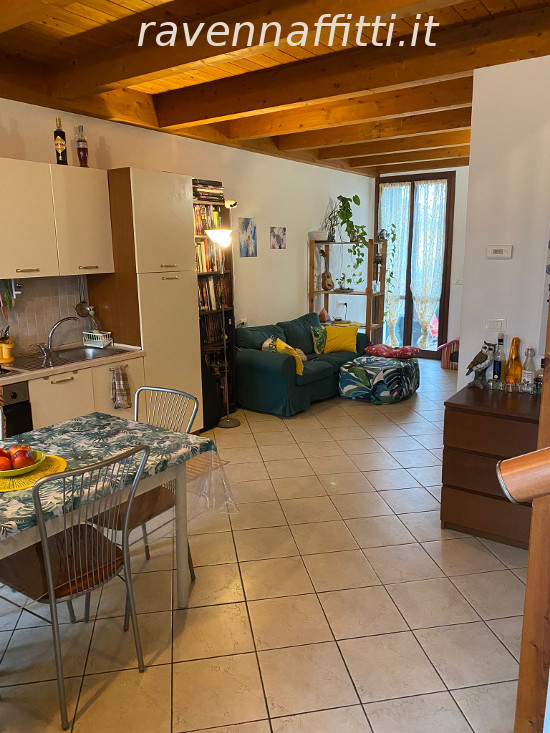 Zona Frazione Prima di via Canalazzo, primo piano di moderna schiera con soggiorno e angolo cucina/pranzo, soppalco in legno e travi a vista con due camere, balcone, ripostiglio, bagno. Posto auto riservato. Si affitta ammobiliato, Euro 540. Libero a fine febbraio. Per info: 0544.455965 mobile: 345.4715754 Visita ravennaffitti. it