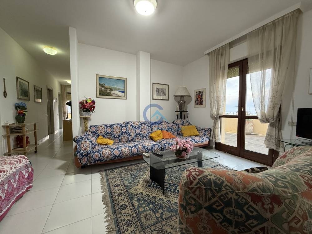 Soverato Marina, in posizione centrale a pochi passi da Corso Umberto I, proponiamo splendido attico arredato posto al sesto ed ultimo piano in condominio servito di ascensore. L'immobile è impreziosito da un terrazzo, in parte coperto, di circa 150 mq ed un terrazzo sovrastante, accessibile da scala esterna in metallo, con splendida vista panoramica. All'interno è così distribuito: ingresso, soggiorno living, cucina abitabile, tre camere da letto, bagno padronale con vasca, bagno esterno con doccia e ripostiglio. Dotato di riscaldamento autonomo con pompe di calore caldo/freddo in ogni ambiente, scaldino elettrico per produzione di acqua calda sanitaria e portoncino blindato. Contratto transitorio, disponibile da subito fino al 15 giugno.