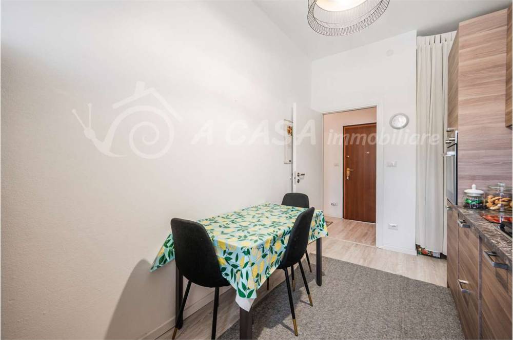 La soluzione è posta al terzo ed ultimo piano di un tranquillo contesto condominiale ed è composta da ingresso in disimpegno, tramite il quale si accede alla comoda cucina abitabile con ripostiglio. La zona giorno è completata da un ampia e luminosa sala da pranzo con accesso diretto al godibile balcone. In zona notte troviamo una spaziosa camera matrimoniale, una camera singola ed un comodo bagno con box doccia.