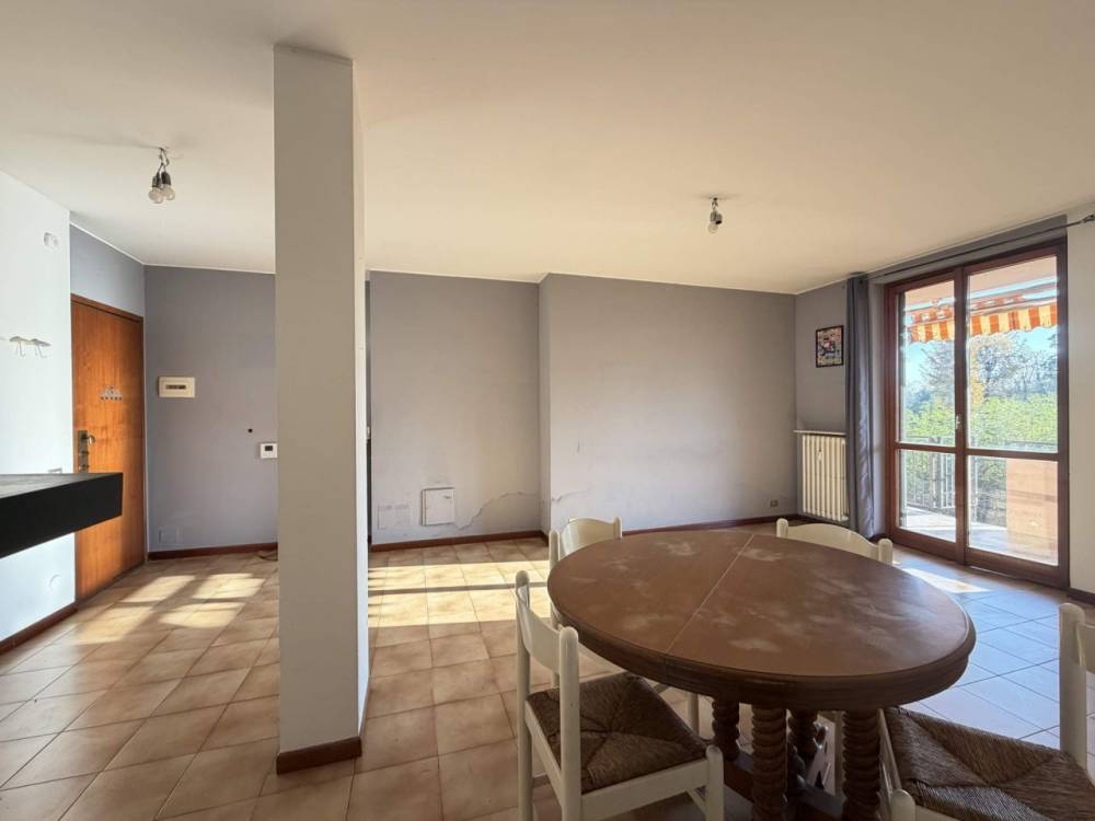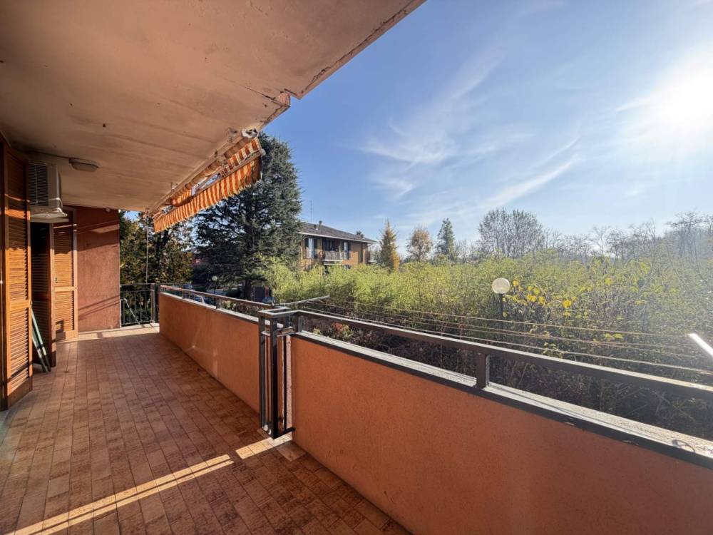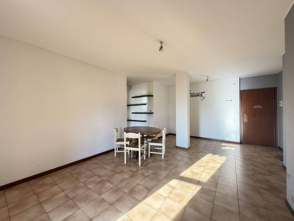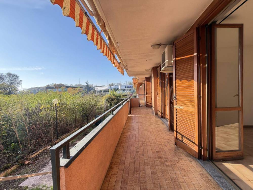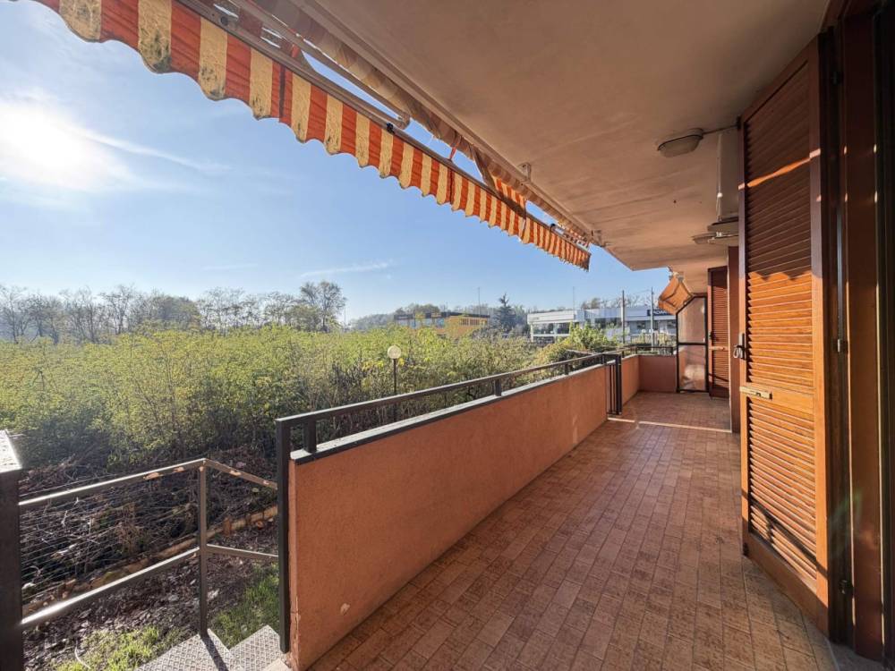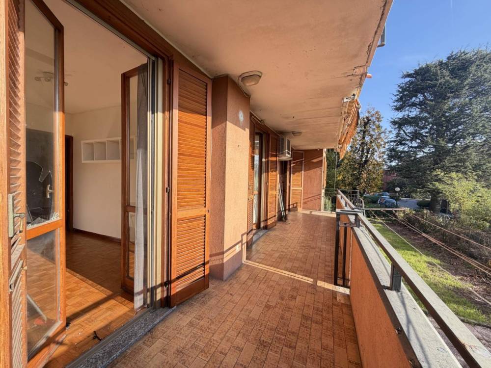 L’ingresso è nell’ampio soggiorno, con portafinestra, che permette l’accesso alla lunga balconata e al grande giardino; l’ambiente è di buone dimensioni e permette di essere arredato a piacimento.