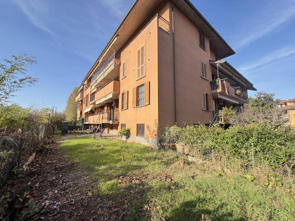 Trilocale con ampio giardino, box e cantina posto al piano rialzato in condominio di soli 3 livelli con ascensore.