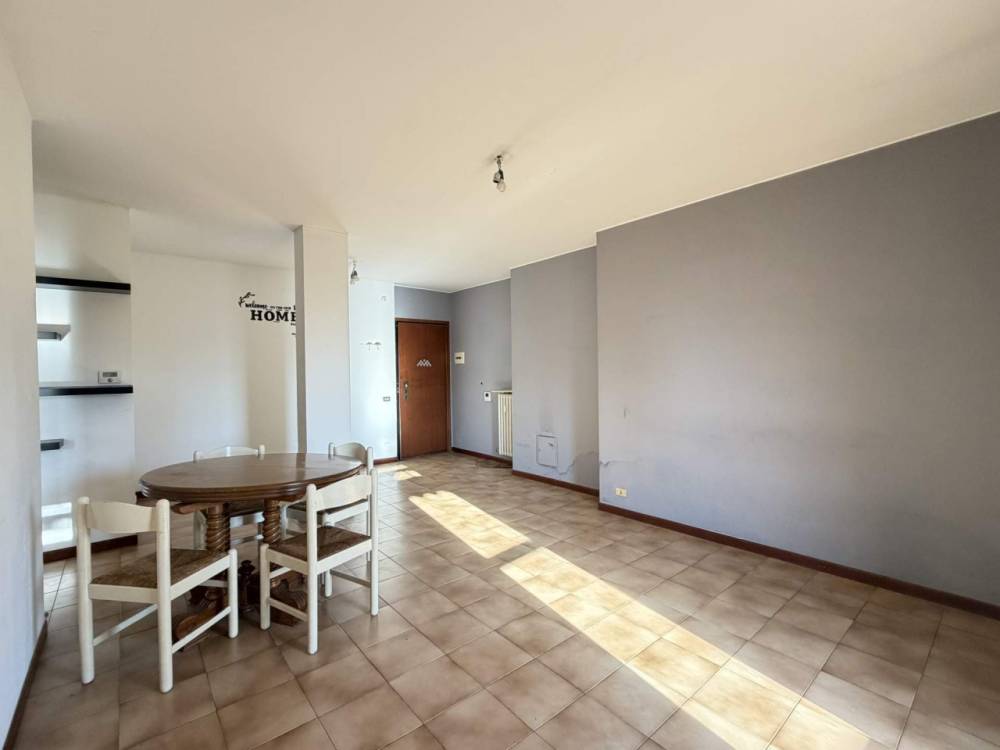 Dal soggiorno, si accede alla cucina e al disimpegno della zona notte.