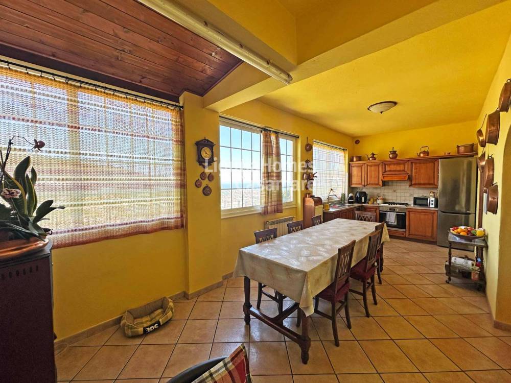 Piano terra: la parte più antica della villa, caratterizzata da soffitti a volte, qui siamo accolti da un'atrio di ingresso, una stanza adibita a salotto tv che ci accompagna sul luminoso soggiorno con angolo cottura e vetrate panoramiche, tre camere da letto e un ampio bagno; adiacente all'appartamento è presente un'ampia terrazza con area barbecue,