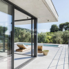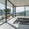 Le favolose e grandi vetrate scorrevoli aprono la zona giorno verso lesterno, dove un terrazzo panoramico di 180 m² ospita la piscina.