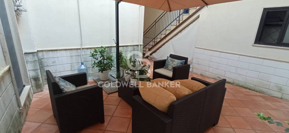 Un cortile comune fa da sfondo alla seconda unità immobiliare del piano terra costituita da due vani che fungono da tinello con cucina a vista, camera matrimoniale oversize e bagnetto.