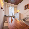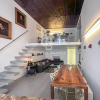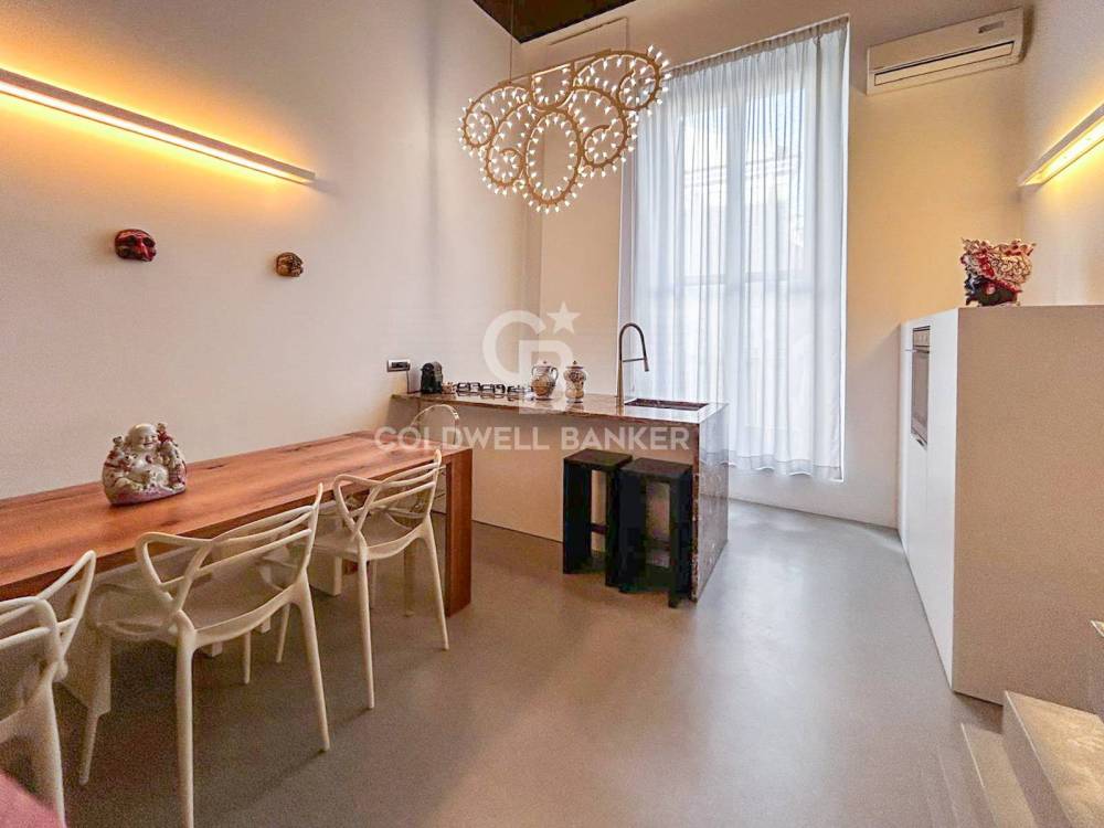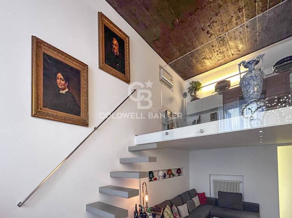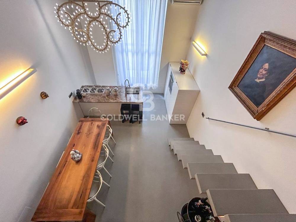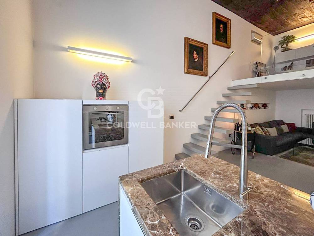 Lingresso conduce a un ampio open space con cucina a vista e zona living accogliente, con un arredo scelto con gusto ed equilibrio. Una scala moderna e lineare conduce al soppalco mansardato, dove trova spazio una confortevole e luminosa zona notte, perfettamente integrata con larchitettura dellambiente.