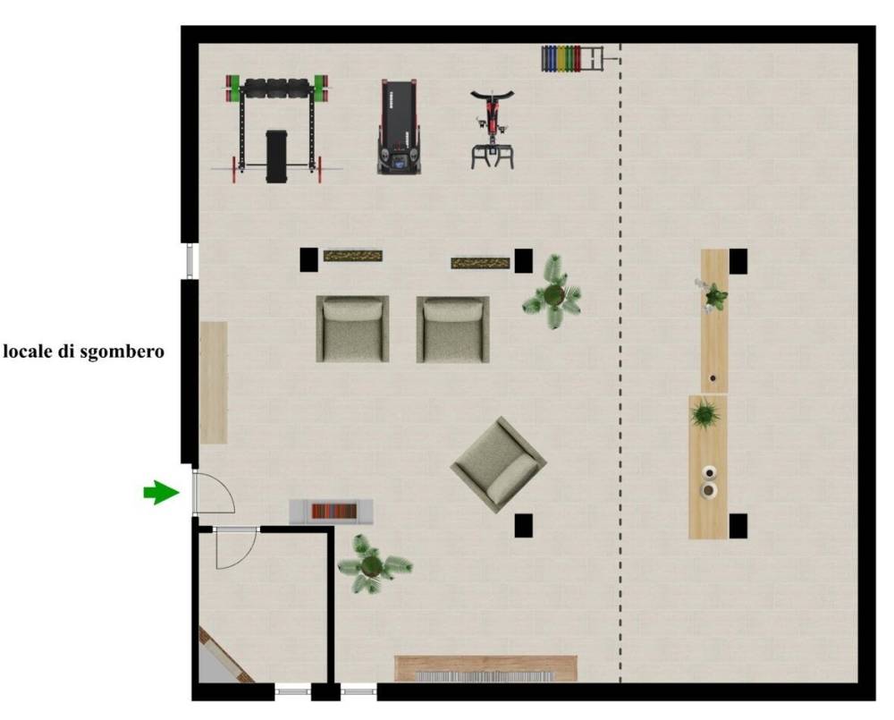 Locale sgombero al piano mansarda. Attualmente non rifinito ed è composto da unico ambiente con due finestre e con un ripostiglio con caminetto. Sito al piano secondo e ultimo ed ha l'altezza massima di mt 2,55 e invece la minima è di mt 0,90.