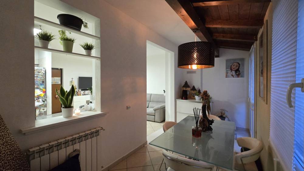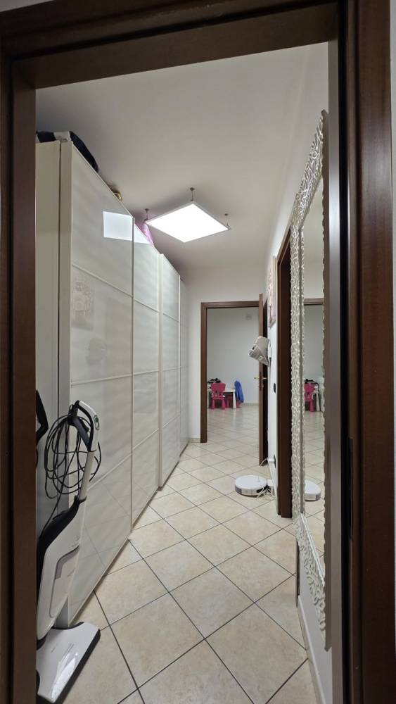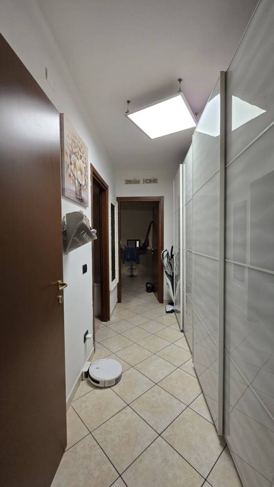 L’appartamento si distingue per un ampio e luminoso soggiorno, perfetto per la zona relax e la convivialità, e una cucina semi-abitabile ben separata ma funzionale, che mantiene un equilibrio tra comfort e praticità. Un corridoio particolarmente largo ospita un grande armadio, utilissimo per lo stivaggio e l’organizzazione degli spazi, mentre il bagno finestrato è ampio e ben distribuito, con finiture di qualità. La camera da letto matrimoniale offre ampi spazi e luminosità, garantendo comfort e riservatezza.