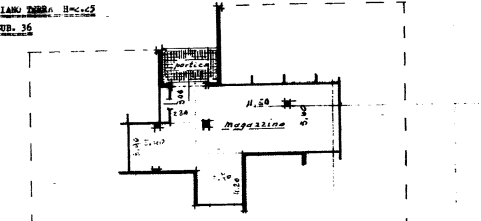 Locale ad uso magazzino posto al piano terra, all'interno di una palazzina residenziale sviluppata su più piani. Attualmente si trova composto da ingresso con portone finestrato, servizio, ampio locale suddiviso al suo interno da una tramezza che delimita un ulteriore ambiente, sempre destinato a magazzino.