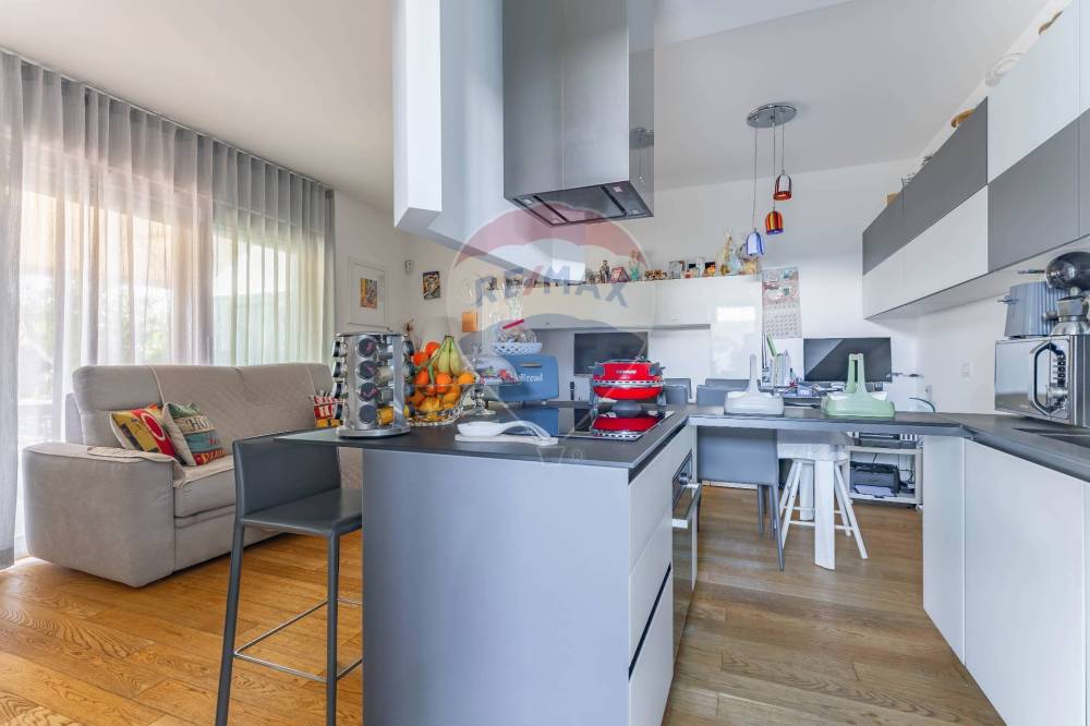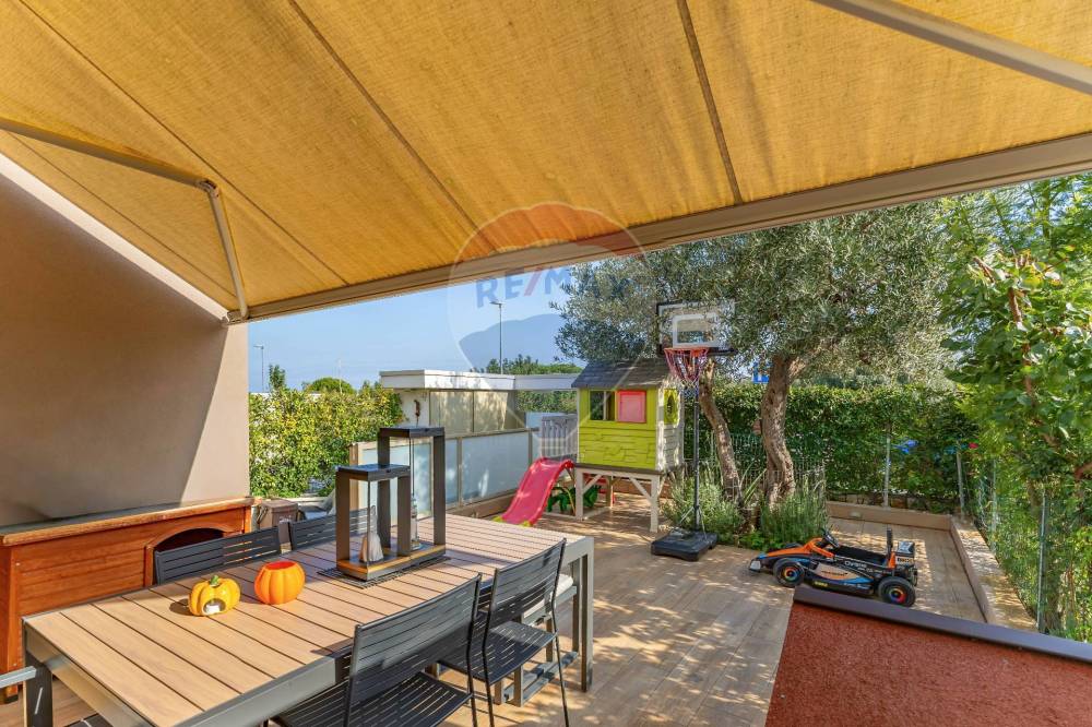 Siamo nella zona residenziale più esclusiva dell'area metropolitana di Bari circondati da un parco di 140.000 metri quadrati con il mare sullo sfondo,nel comprensorio ParchitelloAlta e precisamente nel Residence Parchitelloinpiù. La soluzione che proponiamo è un elegante villetta a schiera con giardino privato attrezzato e posto auto di proprietà. Entrando in casa la grande vetrata del soggiorno offre una straordinaria luminosità all'ambiente principale della casa articolato tra zona divani ed un elegante cucina a penisola. Dal disimpegno si accede al bagno con finestra, alla spaziosa camera da letto matrimoniale e poi ad un secondo vano in veranda. La valorizzazione dello spazio interno e l'accurato interior design caratterizzato da opere in cartongesso, arredi fissi e faretti hanno donato a questa dimora un eccellente funzionalità esaltata da un ampio spazio outdoor in cui oltre al verde e ad uno splendido ulivo trova spazio una zona giochi, una zona pranzo e degli indispensabili vani deposito. Eccellenti le finiture con pavimento in listoni di parquet in rovere naturale spazzolato, rivestimenti bagno con lastre di gres Porcelanosa, rubinetteria Zazzeri, sanitari Duravit,porte artigianali Debartolo ed impianti di ultima generazione con climatizzazione estiva ed invernale alimentata da pannelli fotovoltaici di proprietà in grado di garantire la certificazione energetica in classe A4. Da sottolineare che il complesso si trova all'interno del Parco Vista Mare, un'area verde attrezzata con piste ciclabili, percorso vita e stazioni per esercizi a corpo libero in grado di regalare piacevoli momenti di incontro e di relax per gli adulti e divertenti pause di gioco per i più piccoli. Segnaliamo inoltre la fermata del bus che collega ogni ora con il centro città ed il nuovissimo Sporting Devur Club appena inaugurato che propone un'area sportiva, il centro benessere, il bar ed il ristorante. Da non trascurare la comodità del servizio di collegamento bus con il centro di Bari con frequenza ogni 60 minuti. Le caratteristiche intrinseche di questa soluzione residenziale e la collocazione nel comprensorio attrezzato di ParchitelloAlta e ParchitelloInpiù rappresentano un notevole valore aggiunto che non ha eguali nell'area metropolitana barese