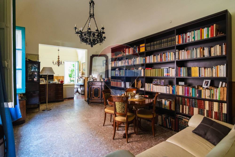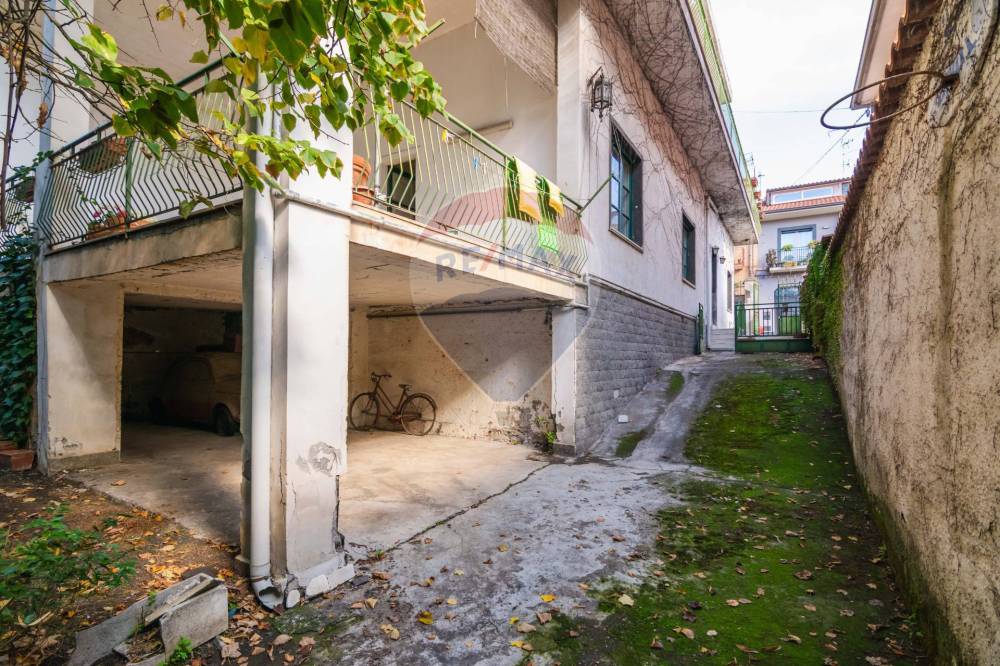 Circondata da un muretto di cinta, con piccole lance in ferro battuto, che la protegge e la distacca leggermente dalla strada, è dotata di un antico cancello in ferro battuto, con rialzo in pietra lavica, che immette in uno spazio perimetrale a giro di esclusiva pertinenza della abitazione, collocata al piano rialzato, che lascia libero solo il passaggio ai proprietari del primo piano.