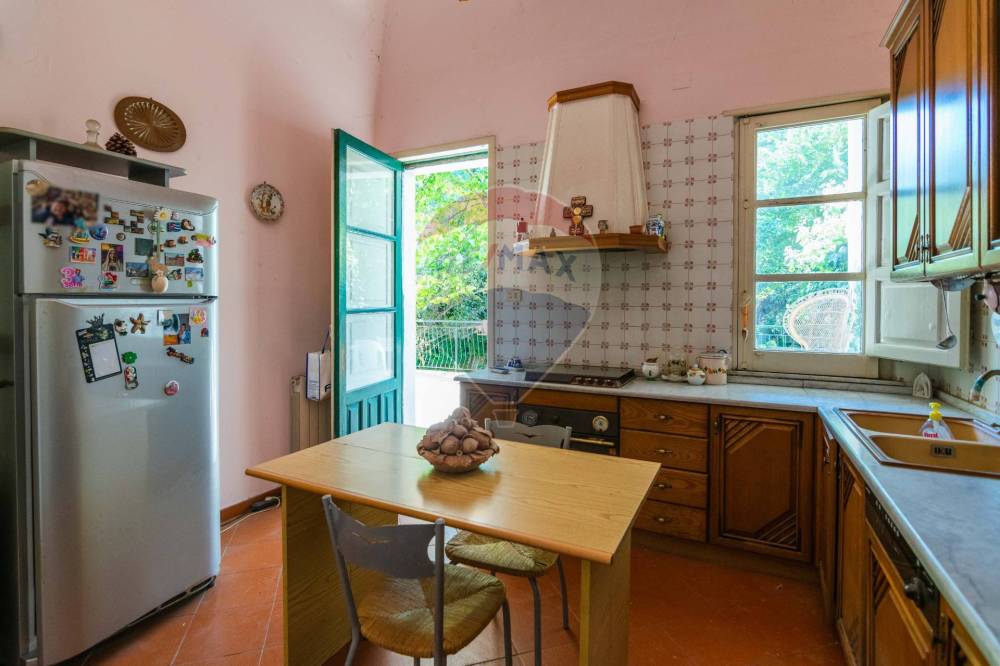 Accanto al triplice salone, abbiamo una bella cucina, piastrellata con ceramica dipinta a mano, già dotata di mobili in rovere della Jolly componibile e pavimento in cotto