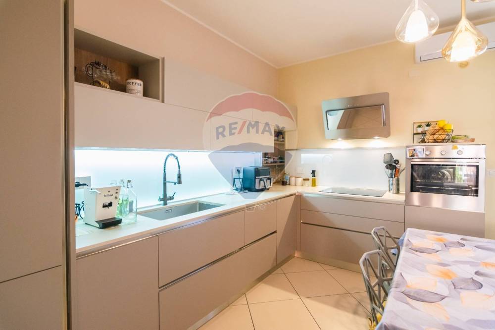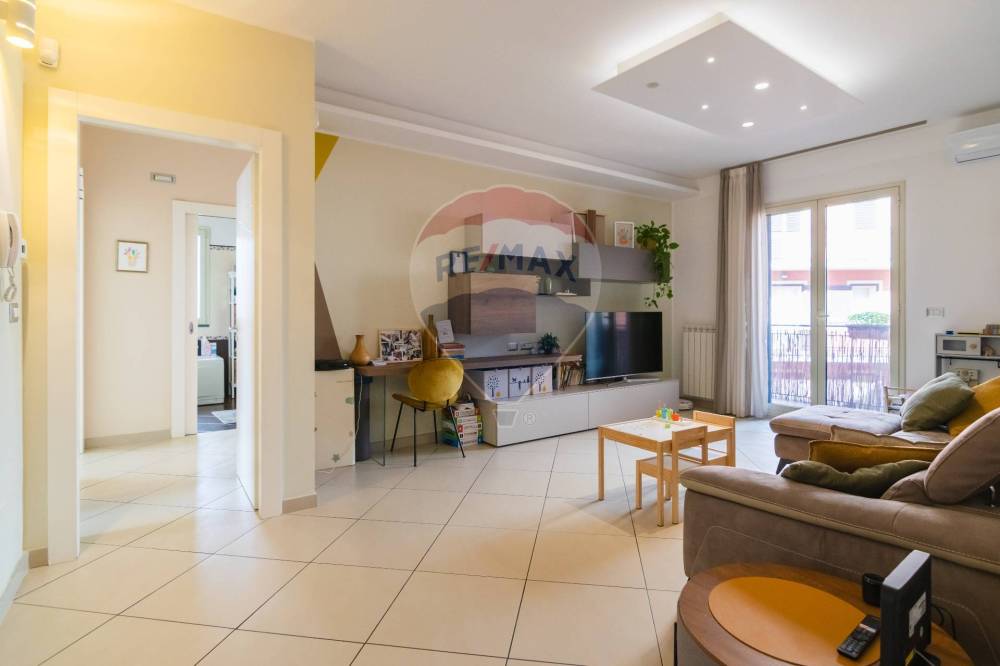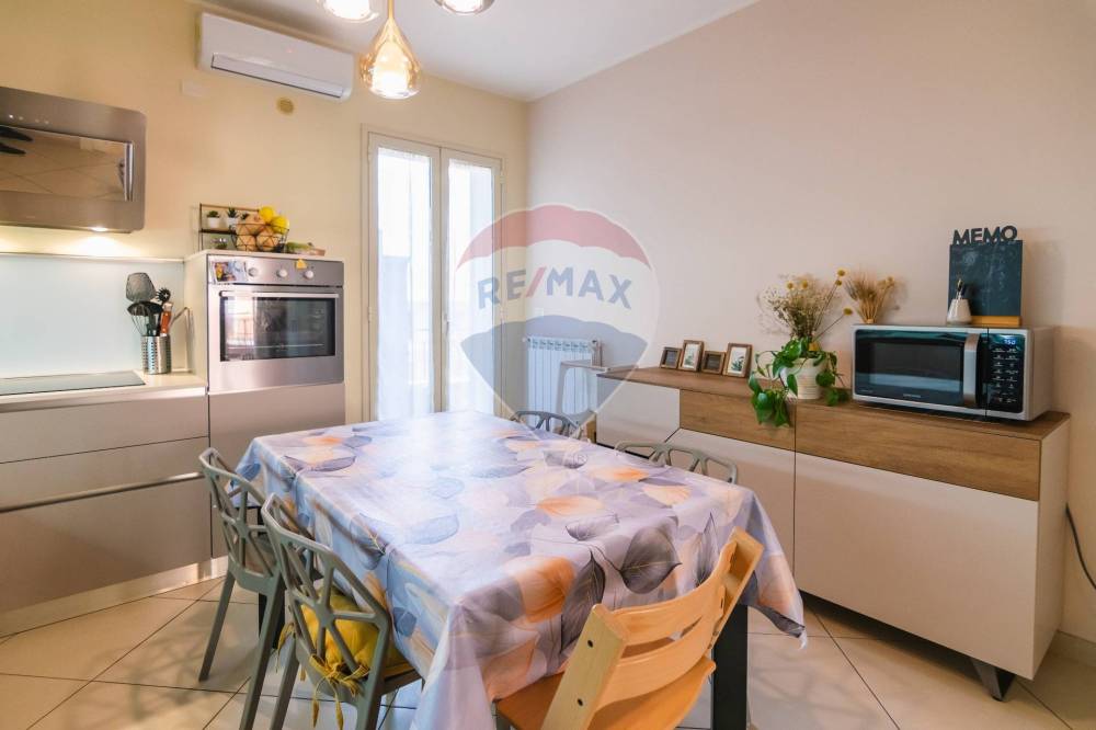L'appartamento si apre su un luminoso salone con balcone, collegato tramite una porta a scrigno alla comoda cucina abitabile, anch'essa dotata di balcone che assicura una doppia esposizione e un'ottima luminosità.