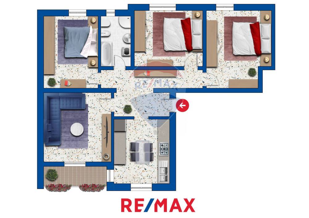 Limmobile si trova al terzo ed ultimo piano, è libero su tre lati e gode di unottima esposizione al sole, ha una superficie di circa 100 mq ed è così composto: ingresso, cucina abitabile separata e già arredata, soggiorno con accesso al balcone, tre camere da letto di cui due matrimoniali già arredate, disimpegno, bagno finestrato con doccia e vasca.