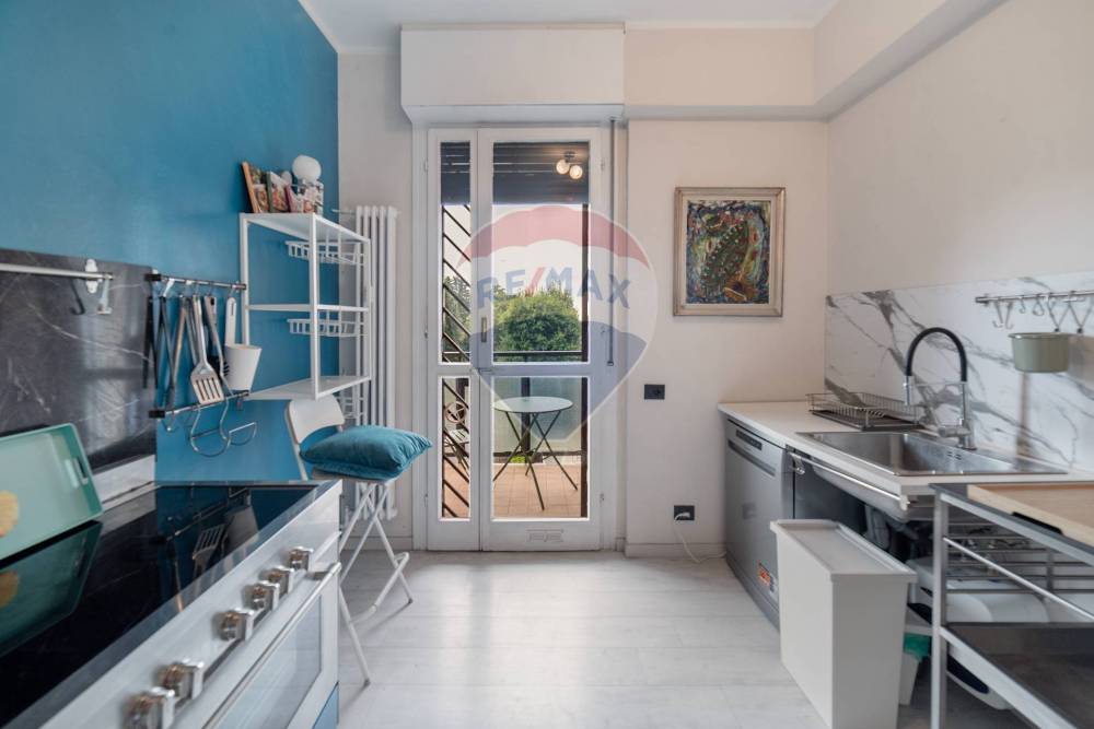 La cucina abitabile, anchessa di generose dimensioni, è dotata di porta finestra che affaccia su un secondo balcone, perfetto per pranzi e colazioni allaperto nei mesi più miti.