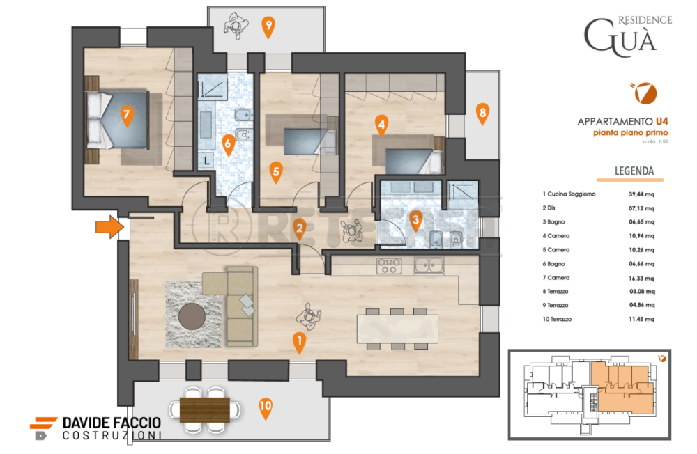 Arzignano - Tezze : Il tuo futuro è "Guà"! Scopri il nuovo e signorile Residence "Guà", dove la tua famiglia troverà la sua abitazione per la vita, in un ambiente curato, moderno e sicuro. Questo nuovo complesso sorgerà in una zona immersa nel verde, ma servita dai mezzi pubblici e vicino al centro urbano, perchè la comodità è importante! Qui proponiamo uno splendido appartamento al piano primo servito da ascensore, caratterizzato da spazi luminosi e ben studiati. La zona giorno in pianta rettangolare si sviluppa su quasi 40 mq e per il comfort della zona notte, troviamo tre spaziose camere da letto. Il tutto servito da due bagni entrambi finestrati. Immancabili la terrazza abitabile ed il garage doppio, i must have di oggi! Pensati felice, pensati a vivere qui! - c.e. "A4" € 280000 RIF. AU4