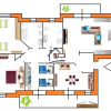 Ingresso su disimpegno, salotto accogliente con predisposizione per caminetto, cucina abitabile, tre camere da letto, due bagni, ampio garage finestrato, con possibilità di realizzare un bagno.