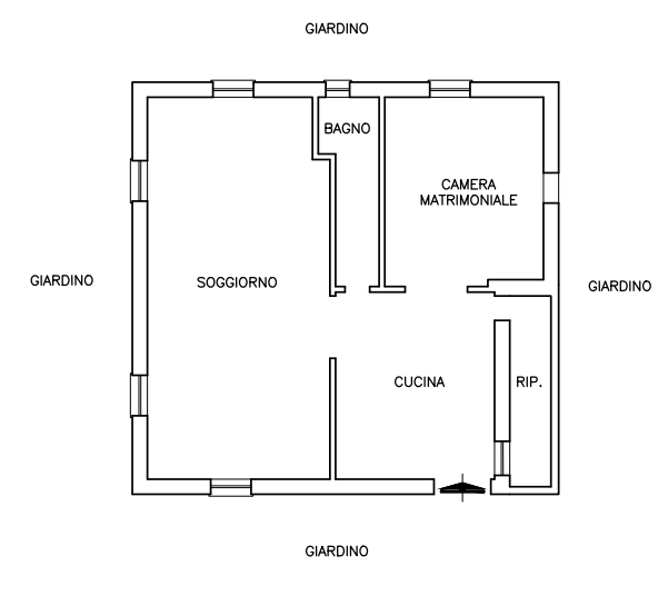 L'immobile ha una consistenza di 5 vani ed è composto da cucina, bagno, camera matrimoniale, camera singola, cantina e un ampio soggiorno. Garage: il bene, censito all'NCEU come stalle, rimesse (cat. C/6) è un box di 42 mq con altezza media 2,20 m.