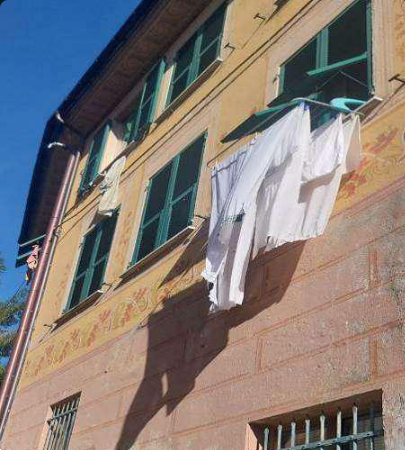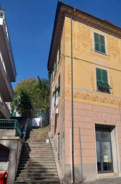 L'immobile, un appartamento posto al terzo piano fuori terra(secondo) di una piccola palazzina costituita da piano strada, primo,secondo e sottotetto è composto da ingresso "alla genovese" da cui si accede a ponente a un piccolo servizio igienico e a una stanza prospiciente via privata Cacciatori , dalla parte opposta ad altra stanza prospettante su sottostante corte e frontalmente a un disimpegno che conduce ad altre tre stanze.