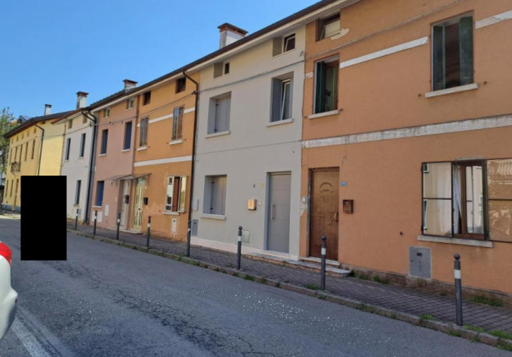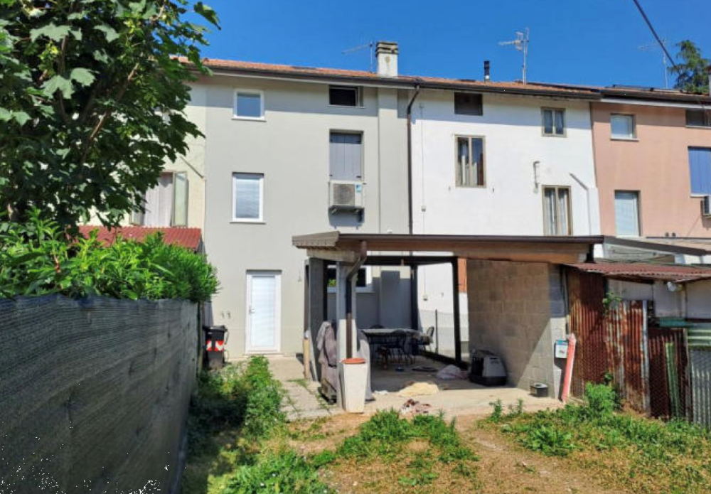 Porzione centrale di casa a schiera con area scoperta esclusiva situata a Schio (VI) in via Pietro Riboli, costituita al piano terra da zona giorno, porzione di area scoperta esclusiva e tettoia; al piano interrato da centrale termica e lavanderia; al piano primo da disimpegno, servizio igienico e camera da letto; al piano secondo da soffitta.