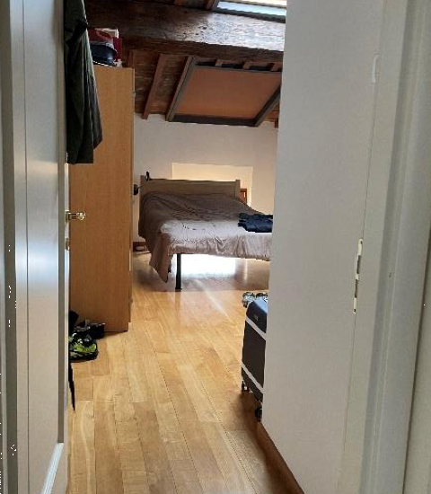 L'accesso avviene da vano scala comune a cui si giunge dall'ingresso posto all'interno della galleria commerciale denominata Galleria del Pozzo Rosso, la grande scalinata del vano scala è dotata di ascensore che collega tutti i piani del palazzo. L'unità abitativa risulta articolata al piano terzo da un ingresso, soggiorno ed angolo cottura in un unico grande vano, disimpegno, bagno cieco e due camere da letto di cui una con bagno interno, oltre scala di accesso al soppalco; al piano sottotetto da soppalco, bagno e locale tecnico con centrale termica. La cantina è costituita da un unico vano di forma trapezoidale.