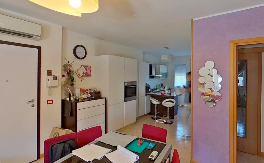 Appartamento al piano rialzato con annessa autorimessa situato nel Comune di Camisano Vicentino (VI) in via delle Orchidee e via delle Rose (accesso carraio) facente parte di un condominio di 16 unità. Abitazione costituita da ingresso, una zona soggiorno-cucina con poggiolo, zona notte articolata attorno ad un corridoio di disimpegno costituita da due camere da letto, e un bagno finestrato; al piano seminterrato ad uso taverna per medesimo sviluppo in pianta del piano superiore da ampi ripostigli, un bagno lavanderia ed un