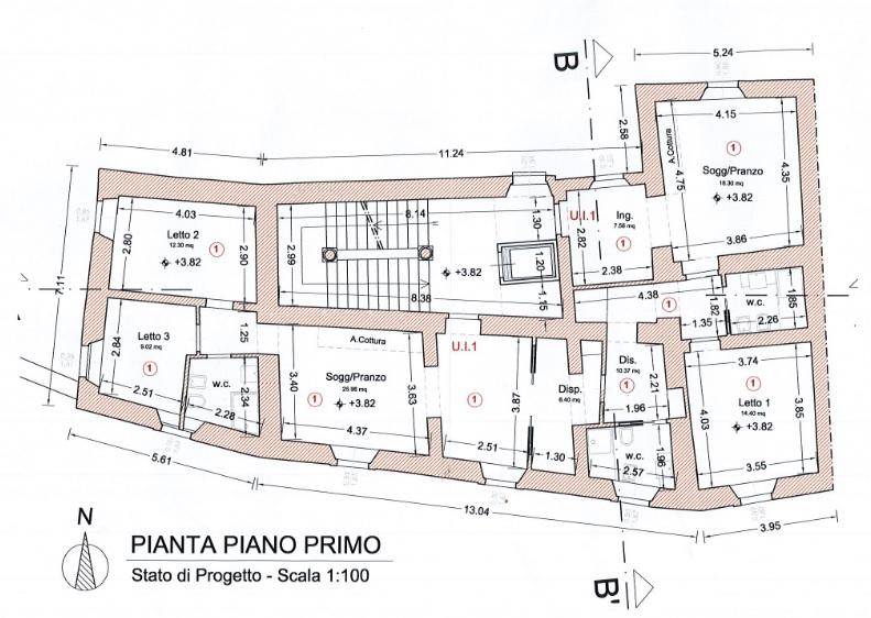 Internamente è stato progettato attualmente con divisione: ingresso-disimpegno, salone di rappresentanza con soffitto a cassettoni in legno, salotto, cucina abitabile, 4 camere, 3 bagni.