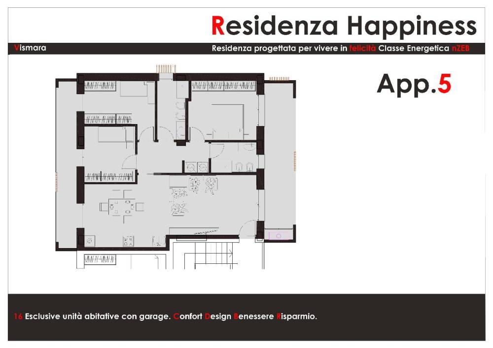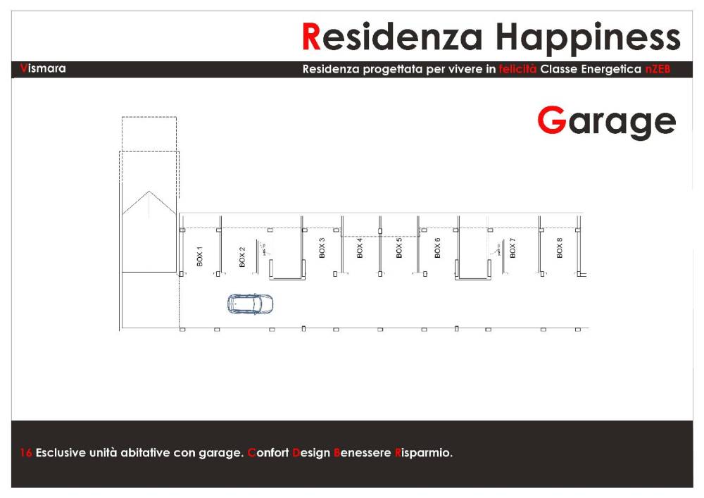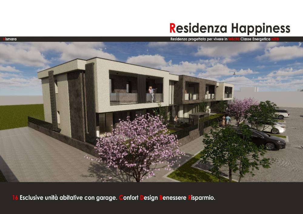 Si accettano prenotazioni per il nuovissimo complesso residenziale (RESIDENZA HAPPINESS) composto da 8 appartamenti moderni, eleganti e confortevoli con prestazioni energetiche di alto livello (Classe energetica nZEB), da mq 90 a mq 100, completano le proprietà giardini esclusivi e/o terrazzi abitabili oltre a GARAGE esclusivi a scelta da 22 mq a 29 mq; dotato di tutti i più moderni impianti, per ottimizzare il risparmio energetico, con riscaldamento a pavimento o pompa di calore, pannelli fotovoltaici privati e ventilazione meccanica controllata (VMC) per garantire il vostro benessere all'interno dell'alloggio! Consegna prevista MARZO 2027.