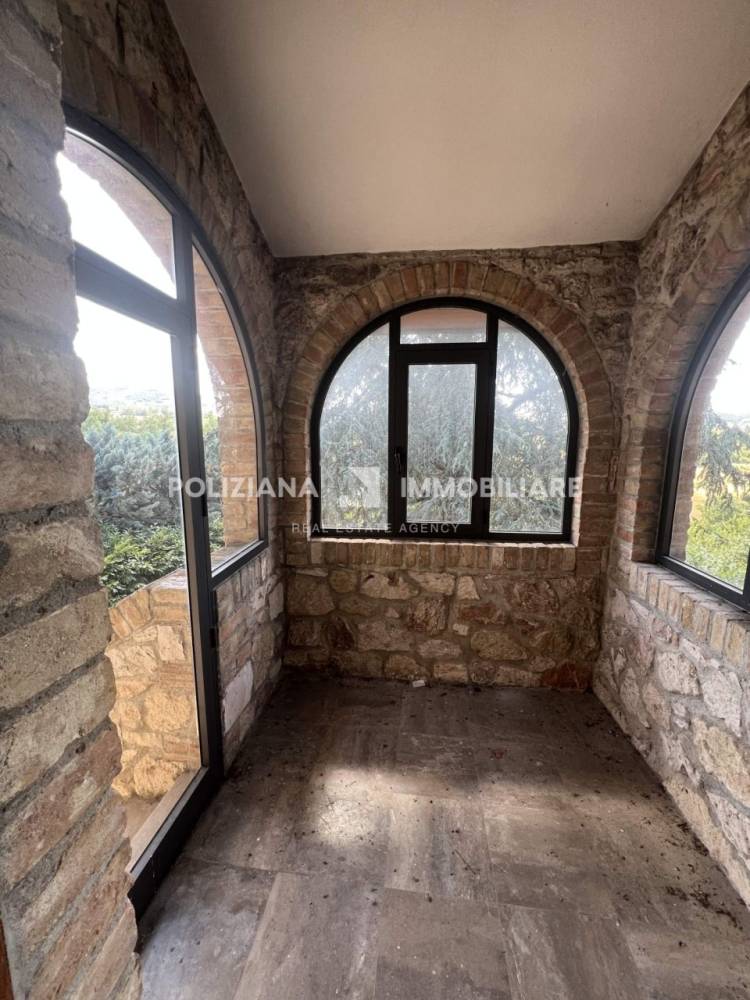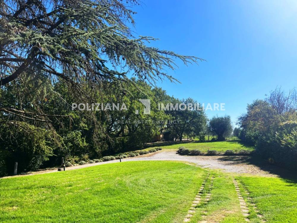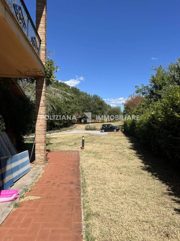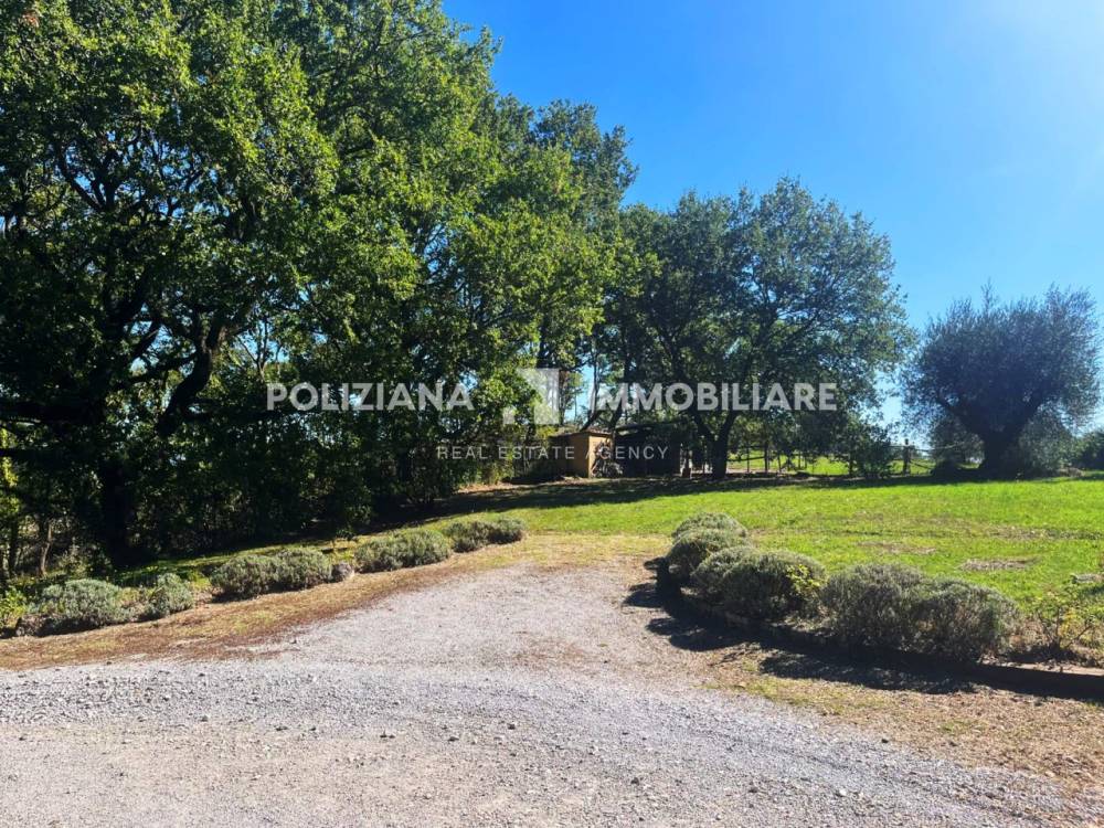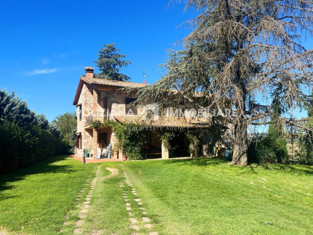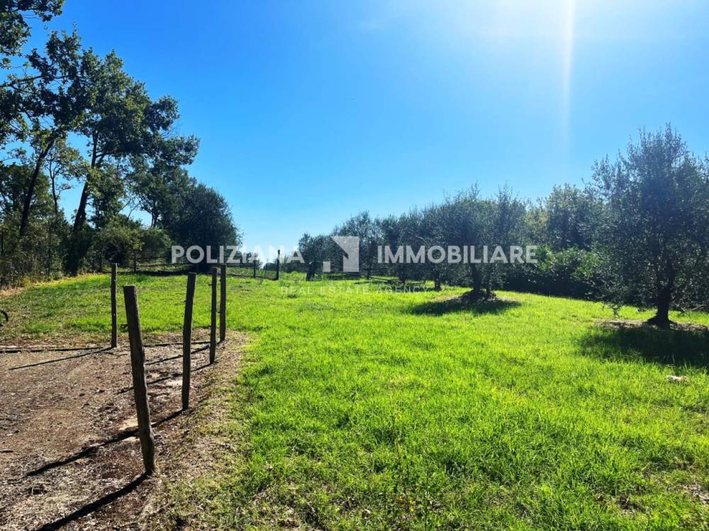 Il giardino di 1000 mq è perfetto per godere di momenti all'aperto, mentre il terreno contiguo di circa 1 ettaro, con bosco e uliveto, offre infinite possibilità per chi ama la natura. Al piano terra, un doppio living con camino accoglie gli ospiti, accompagnato da uno studio, un bagno e una cucina abitabile con dispensa. Al primo piano si trovano quattro ampie camere da letto e doppi servizi, ideali per famiglie numerose.