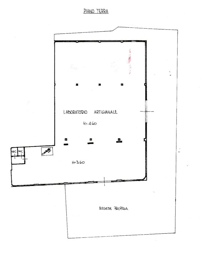 Il capannone è composto al piano terra da un ampio vano laboratorio di circa 400mq oltre servizi con altezza massima di 4,60mt e al primo piano da un magazzino di circa 100 mq.