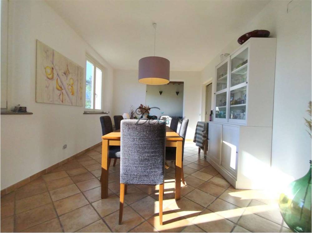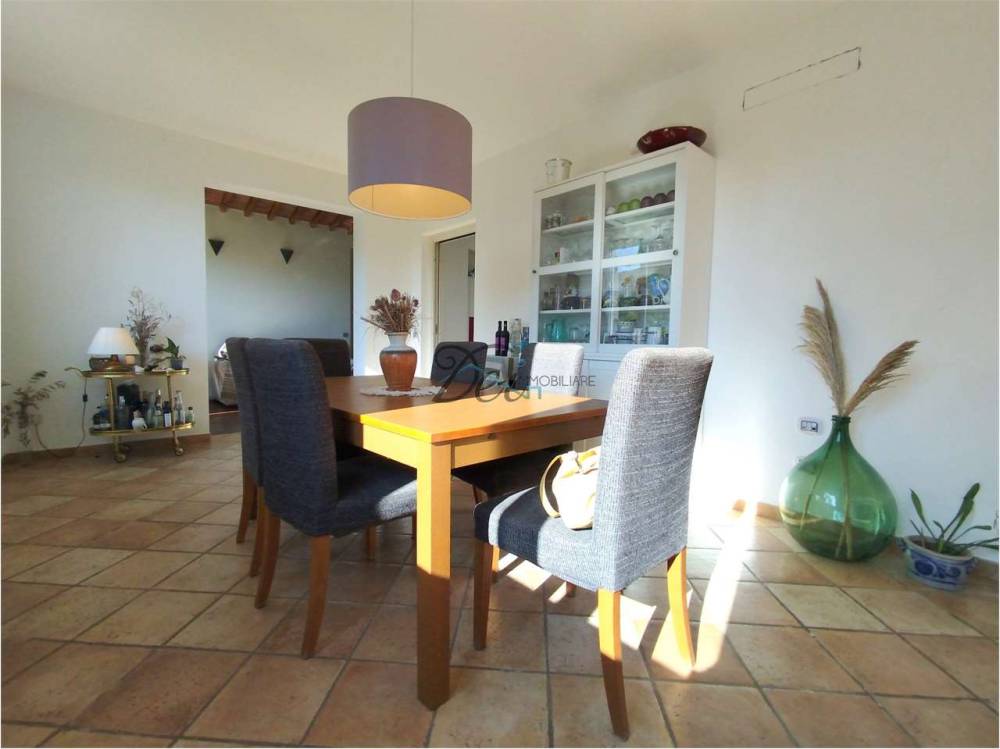 Ingresso, ampio e luminoso soggiorno, sala da pranzo con camino, cucina abitabile con accesso diretto al giardino e bagno finestrato con doccia.