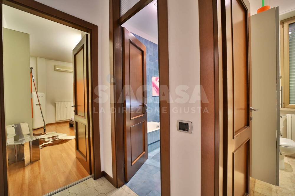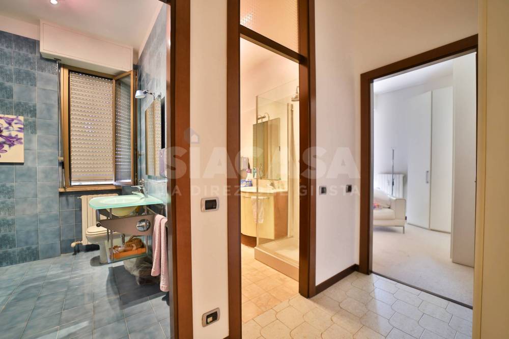 Piano Primo: ingresso, soggiorno con affaccio su terrazzo coperto, cucina abitabile con secondo terrazzino coperto, doppi servizi entrambi finestrati, due camere da letto entrambe con uscita sui terrazzini.