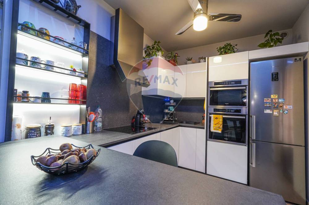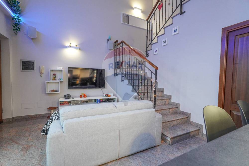 L'ingresso principale posto al piano primo si apre su un'ambiente suddiviso tra soggiorno e cucina a vista, loggiato raggiungibile sia dal soggiorno che dalla cucina.