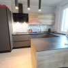 La cucina è a vista, un'opzione moderna che crea un'atmosfera aperta e conviviale.