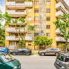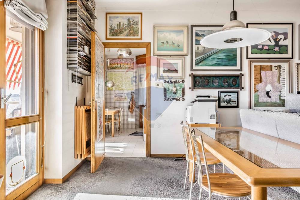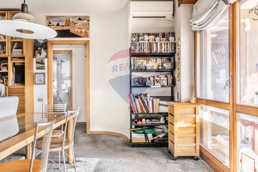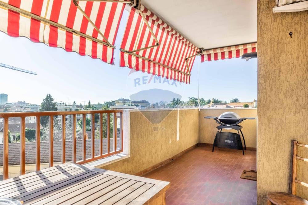 cucina e soggiorno condividono l'accesso a un ampio terrazzo di metri quadrati 15 che può accogliere per i pranzi 6/8 persone con ottima esposizione al sole, sud - ovest un vero e proprio rifugio all'aperto, ideale per momenti di relax e socializzazione. L'incantevole vista panoramica sulle alpi dal quarto piano completa l'esperienza di vivere in questo immobile.